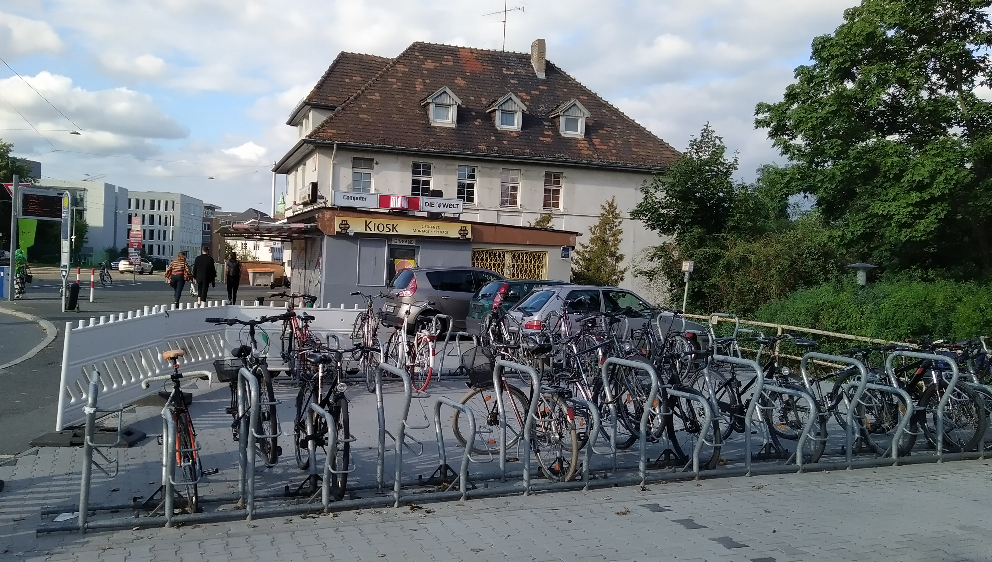 Fahrradabstellplatz ohne Dach für Räder, Bushaltstelle ohne Wetterschutz: